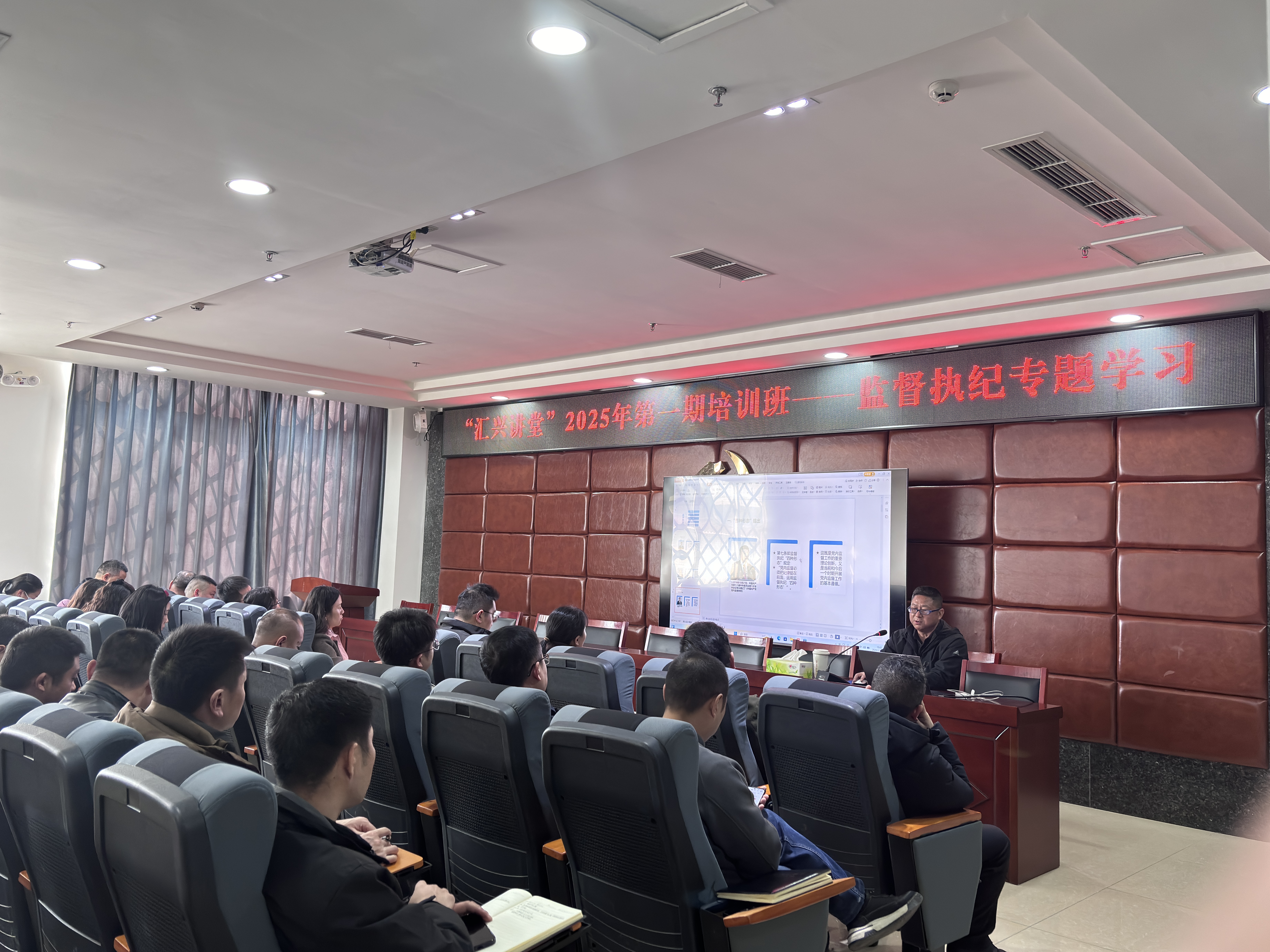 為進一步加強集團黨風(fēng)廉政建設(shè),提升黨員干部廉潔自律意識,2月27日,集團人力資源部在二樓會議室舉辦2025年第一期匯興講堂。此次培訓(xùn)由集團紀(jì)檢監(jiān)察審計部副部長雷華權(quán)主講,二級子公司中層及以上管理人員、黨支部紀(jì)檢委員共67人參加。